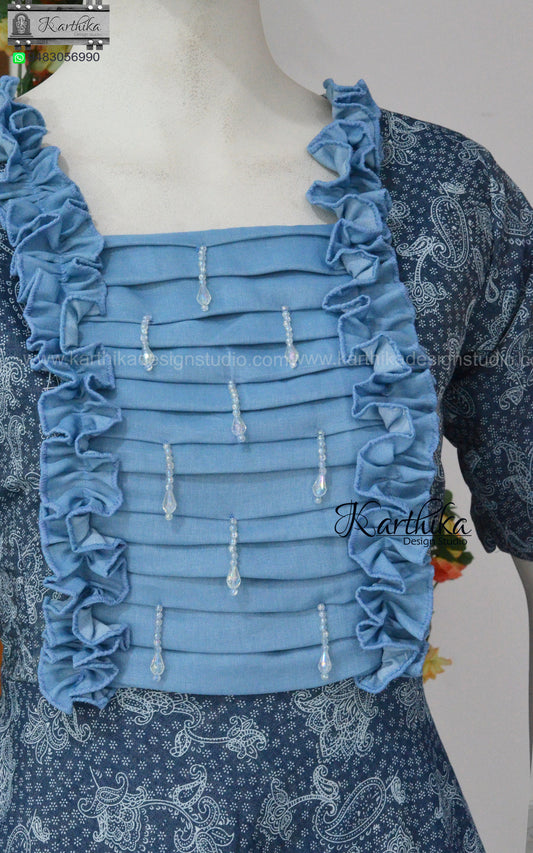 Denim/floral net frock..