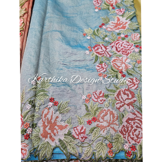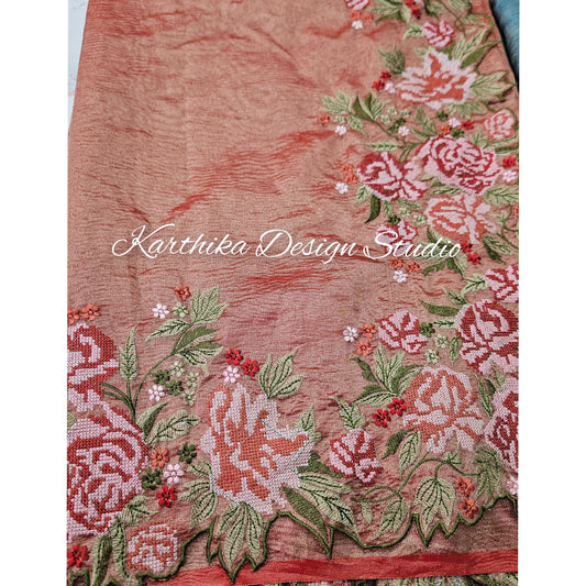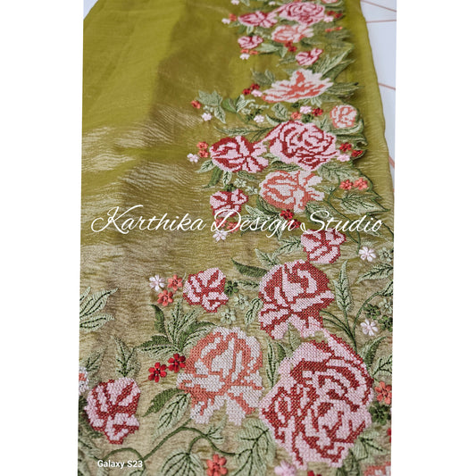 Crushed tissue saree with embroidered border
