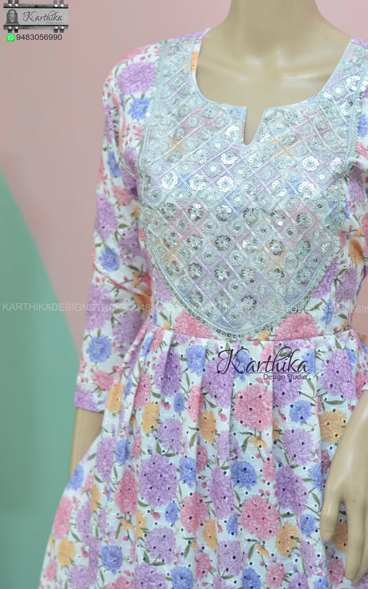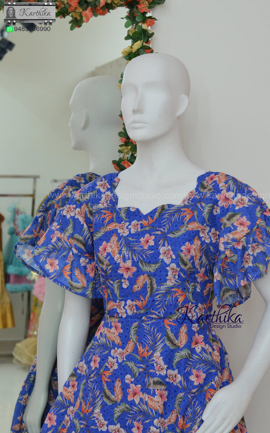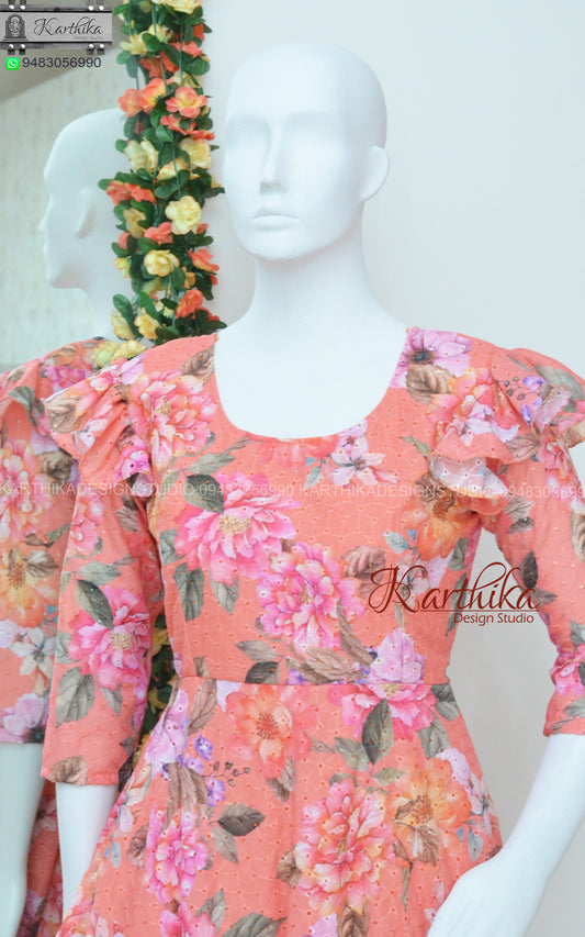 Floral hakoba cotton frock..