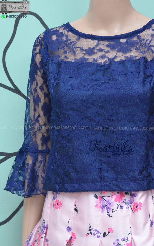 Floral net crop top with satin skirt..