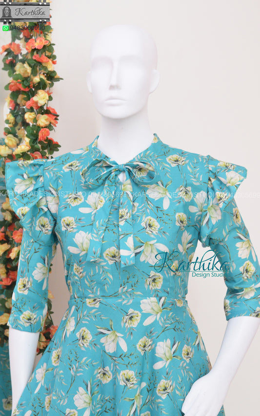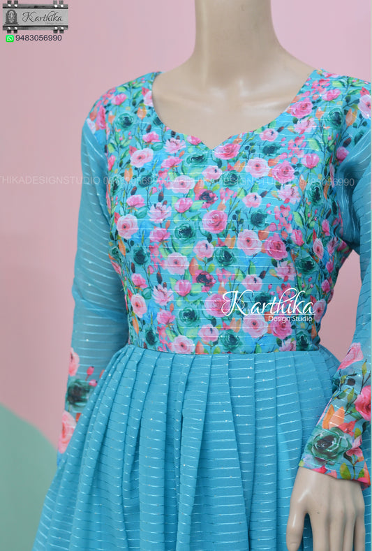 Sold outLight blue Floral georgette frock