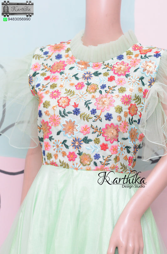 Light sea green Embroidered georgette and net frock