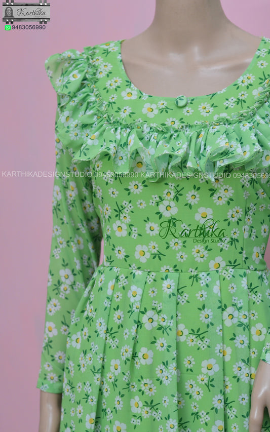 Lime green Floral georgette frock