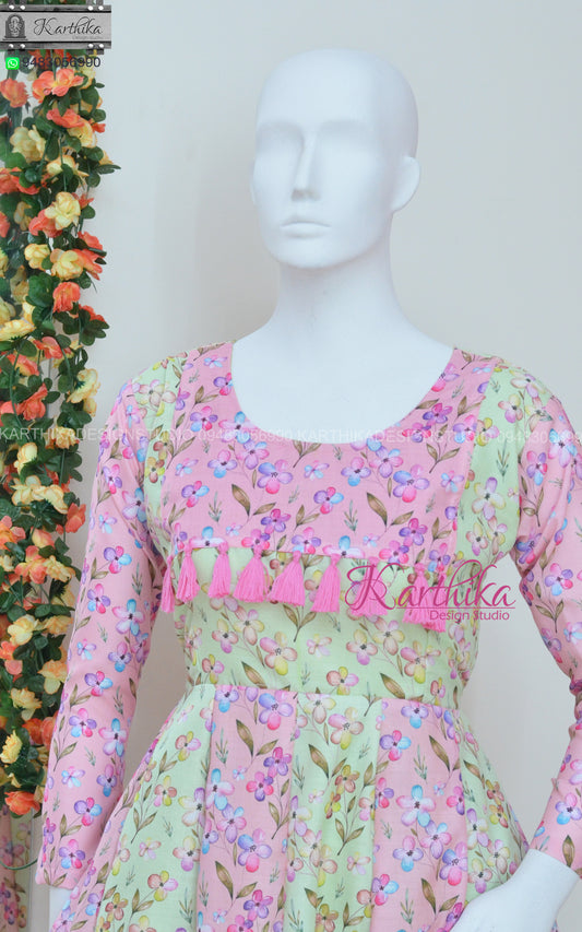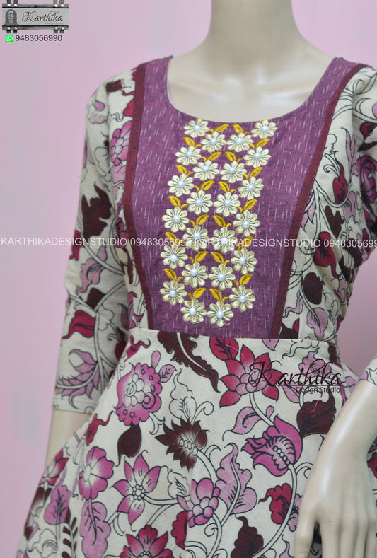 Magenta Narayanpet cotton long gown.