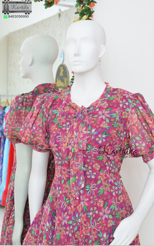 Magenta floral georgette frock