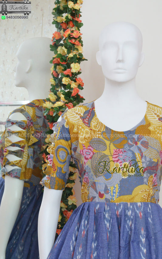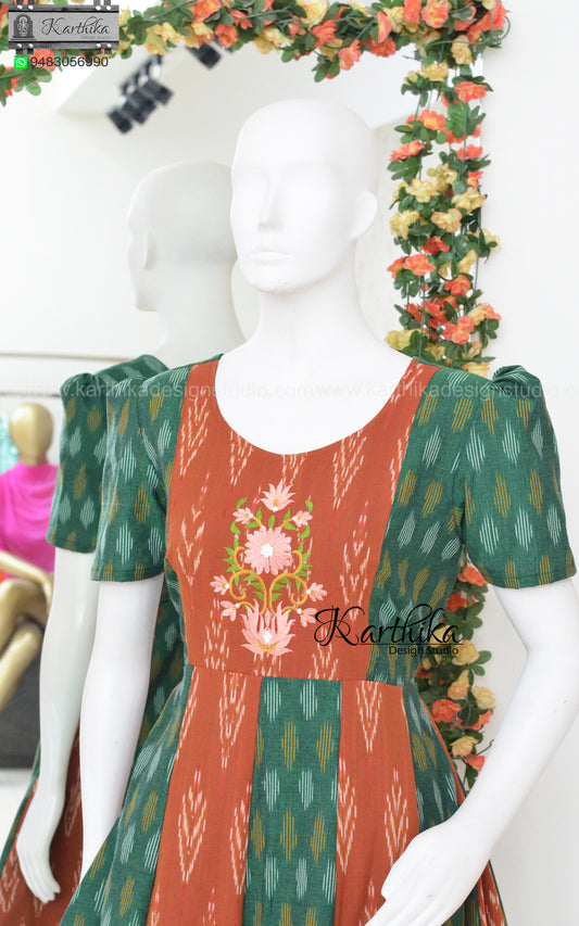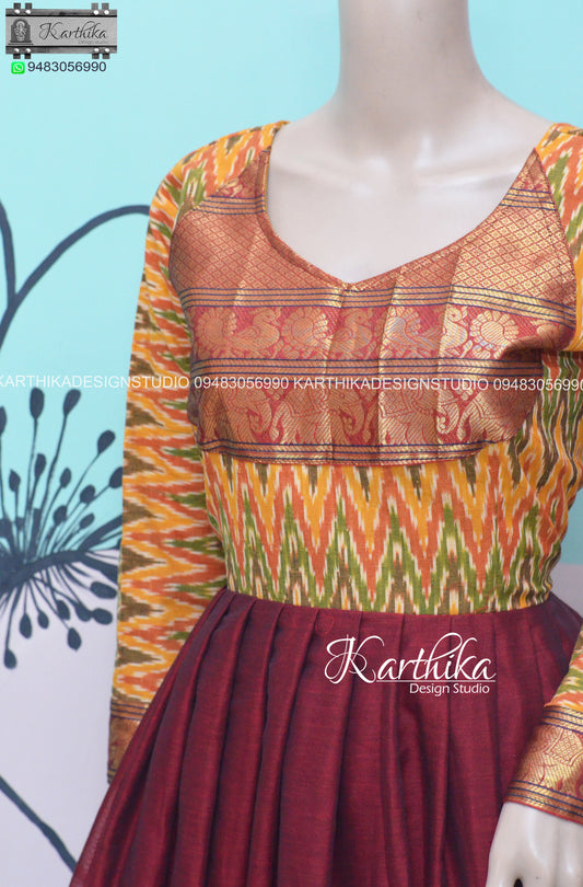 Multicolor Ikkat and Maroon narayanpet cotton long gown..