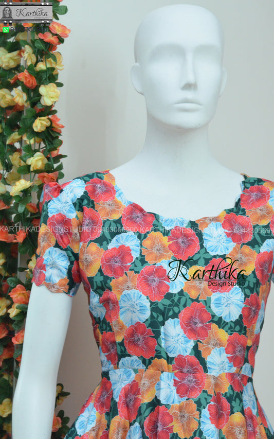 Multicolor Satin floral frock