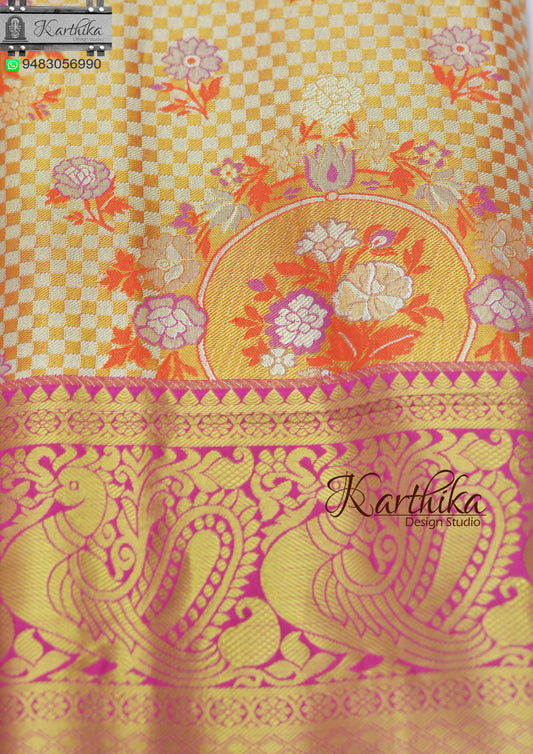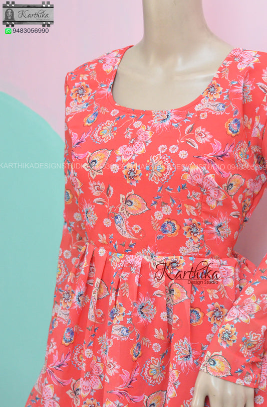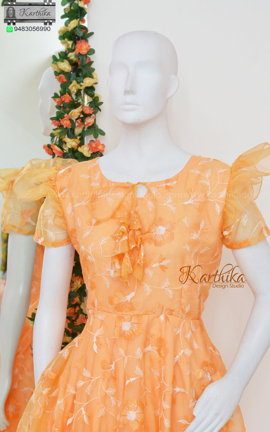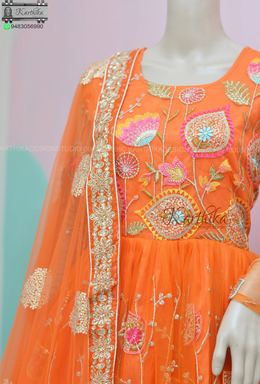 Orange kalamkari and bottle green narayanpet cotton long gown..