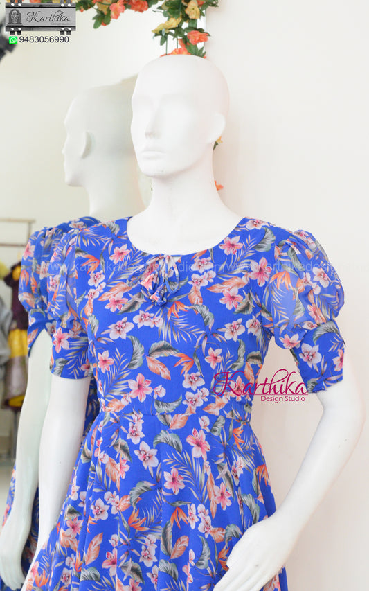 Royal blue floral georgette frock