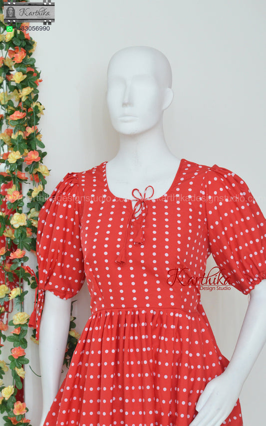 Sold outRed polka dots crepe frock