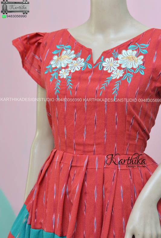 Sold outRed Ikkat cotton kurthi