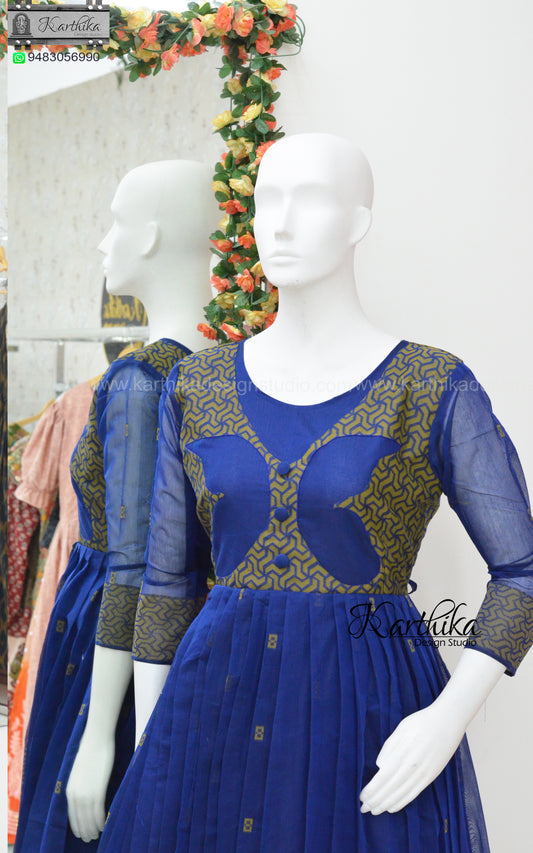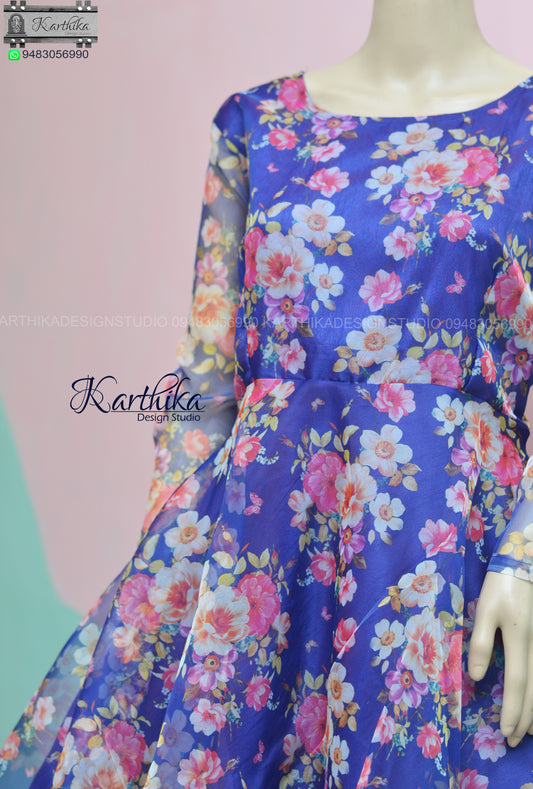 Royal blue floral organza frock