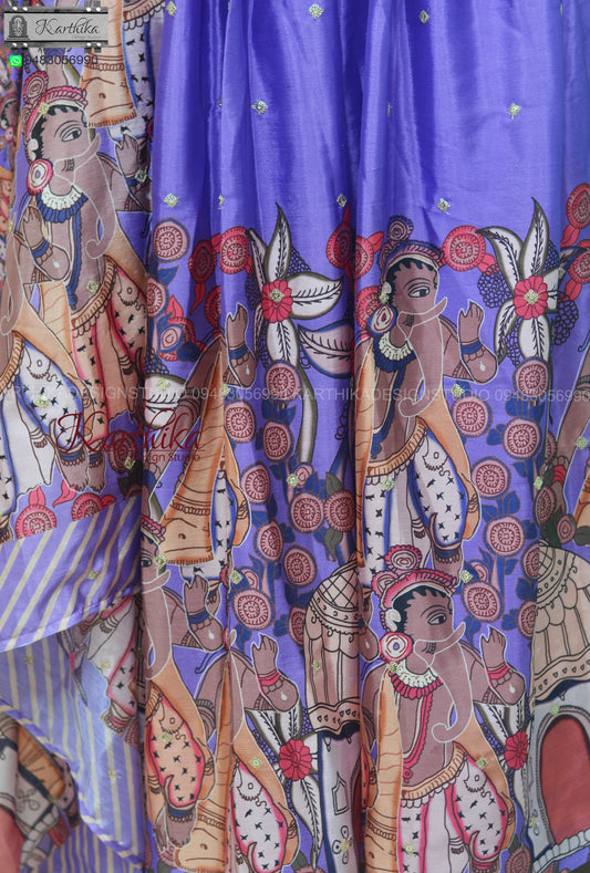 Soft silk langa voni with embroidered blouse