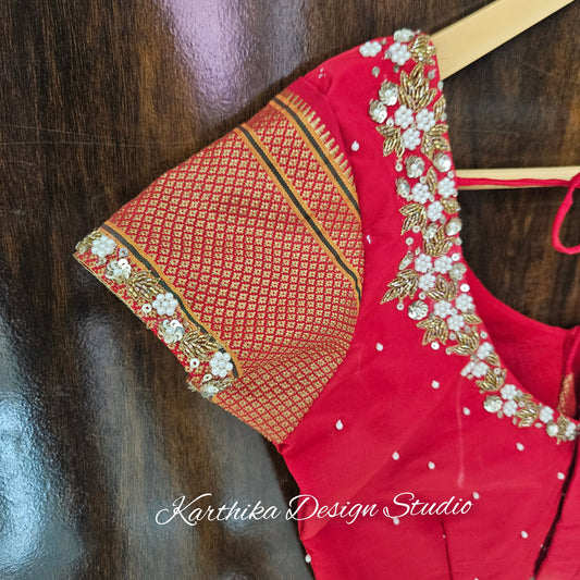 Bridal embroidery work on silk Blouse