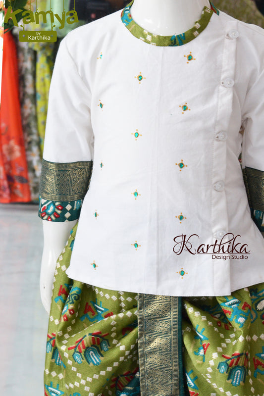 Cotton kurtha with patola silk dhothi