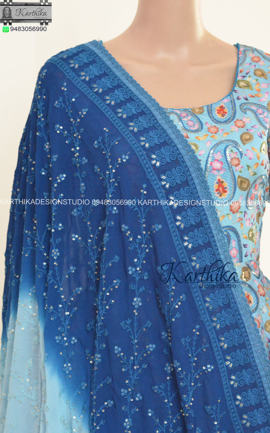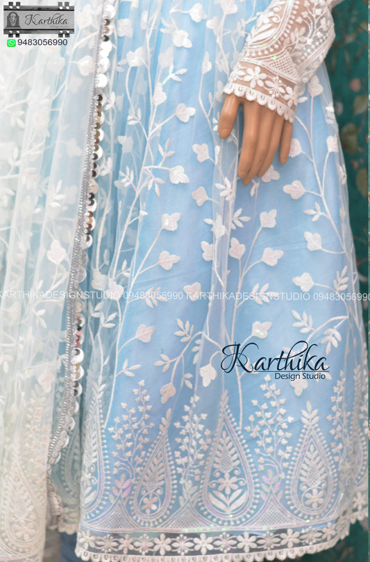 Embroidered georgette and Net chudidhar
