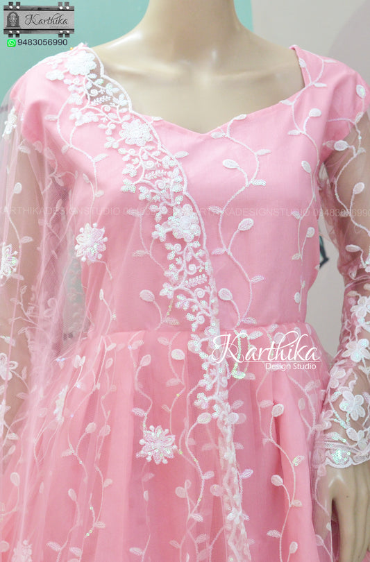 Embroidered Net chudidhar