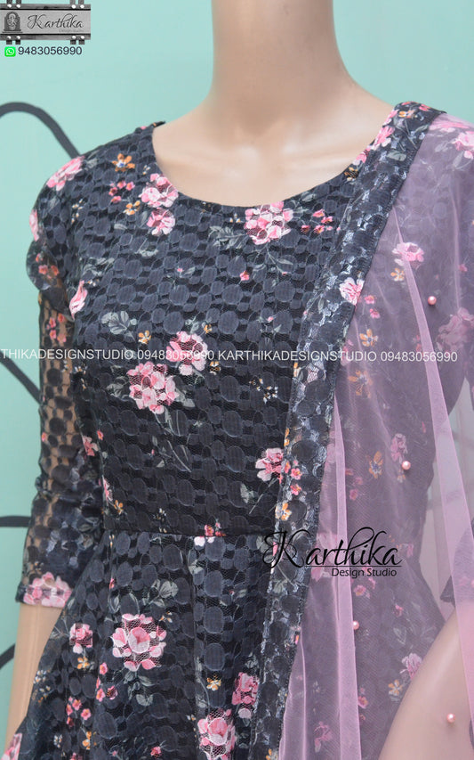 Sold outFloral net chudidhar..