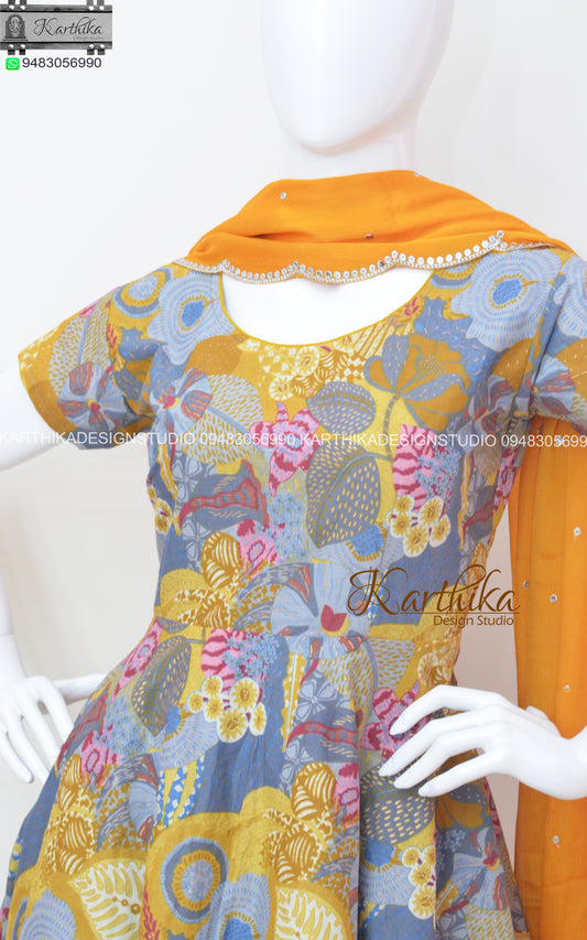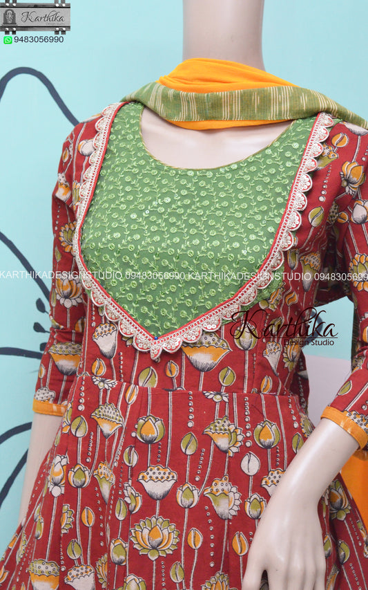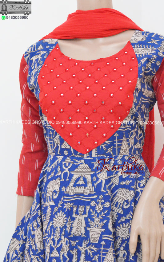 Sold outKalamkari ikkat anarkali chudidhar..