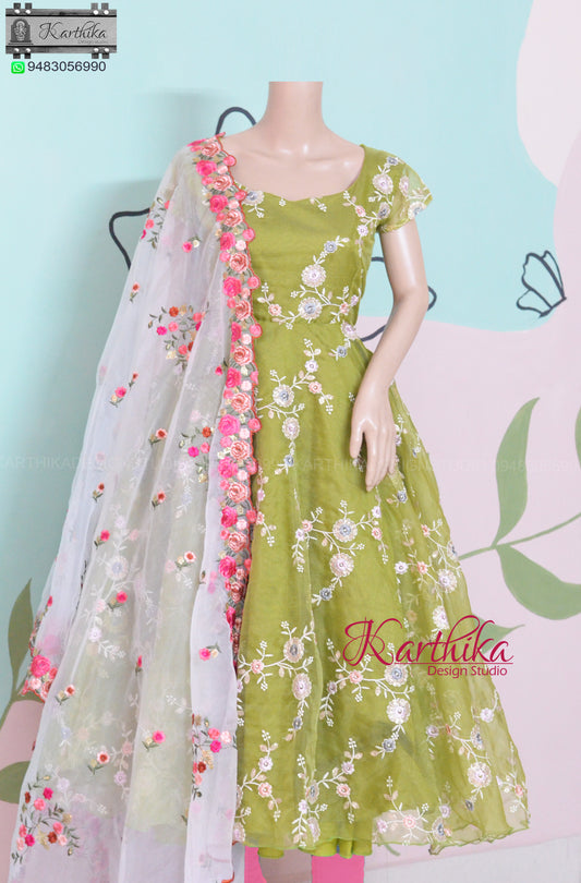 Embroidered Organza chudidhar