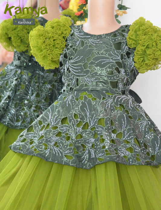 Refreshing green cutwork net birthday frock
