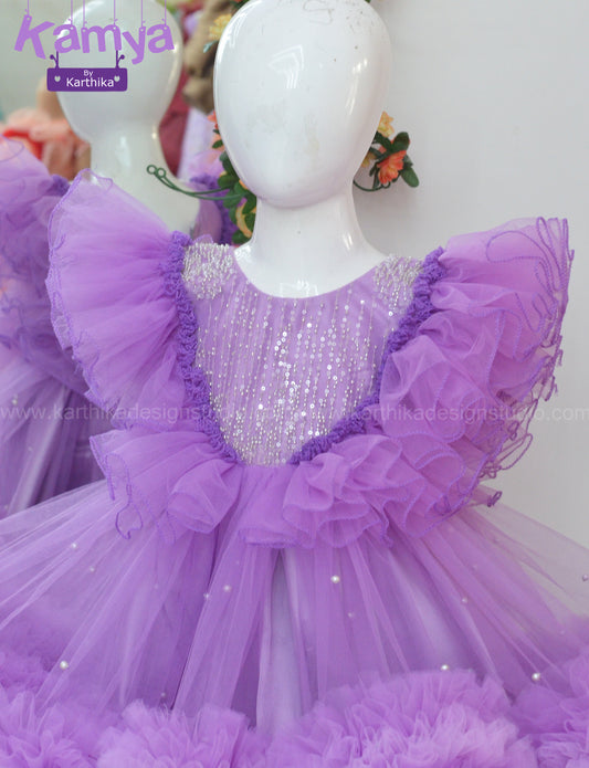 Lavender net birthday frock