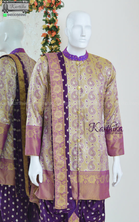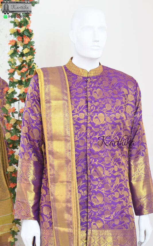Semi silk Dhothi Kurtha with Kanduva