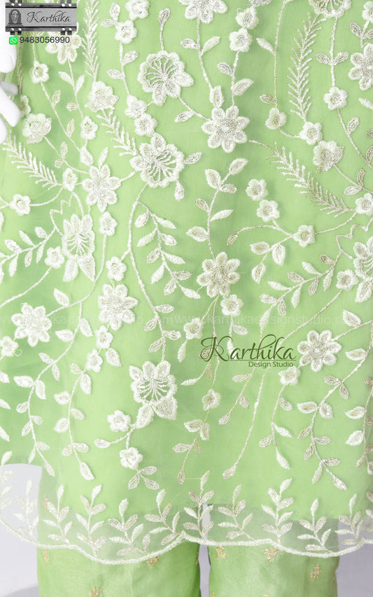 Embroidered net A line kurthi set
