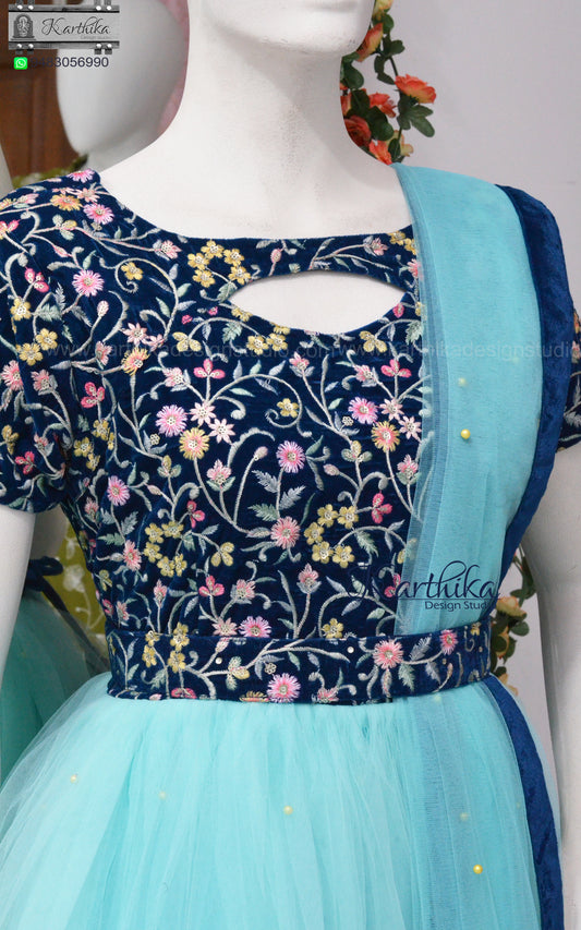 Premium Embroidered net long gown with applique work