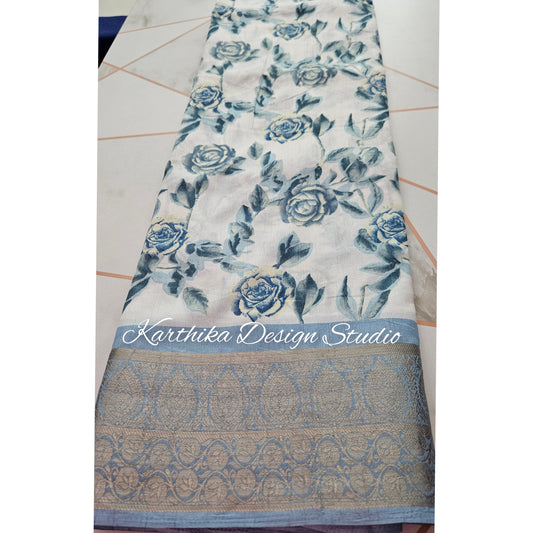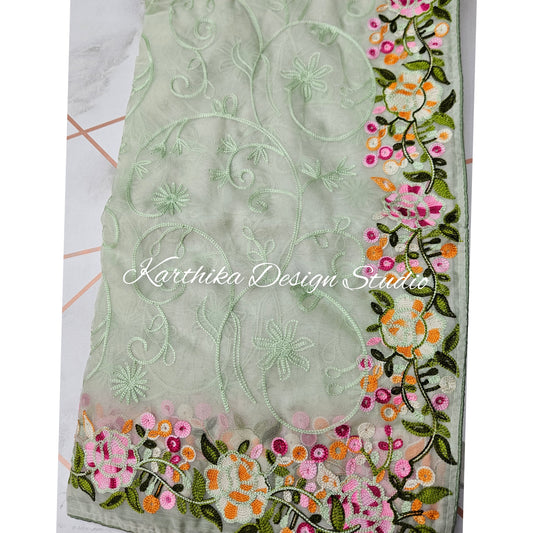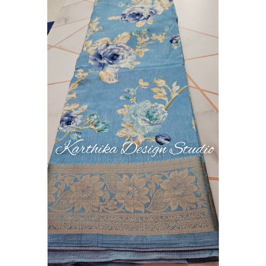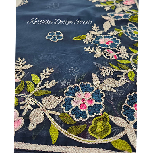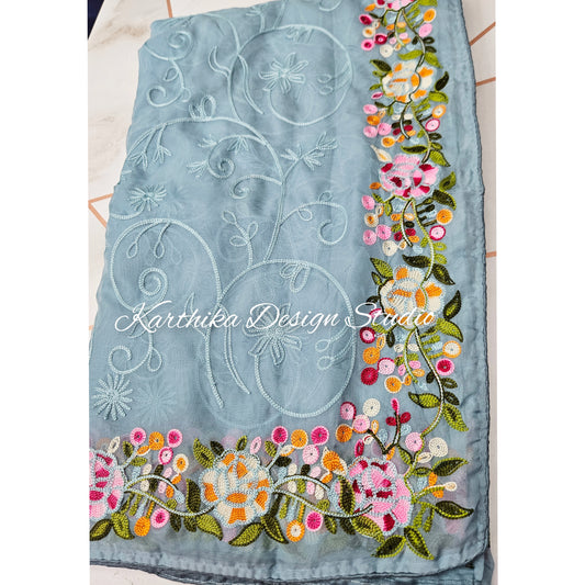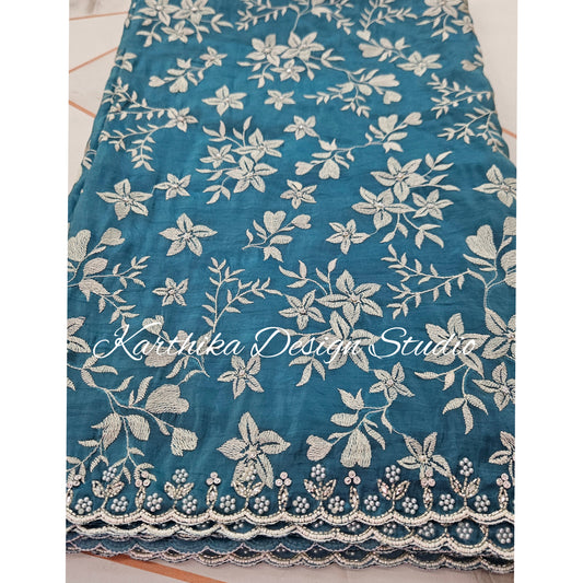 Teal blue Jimmychoo saree with cutwork border and overall embroidery