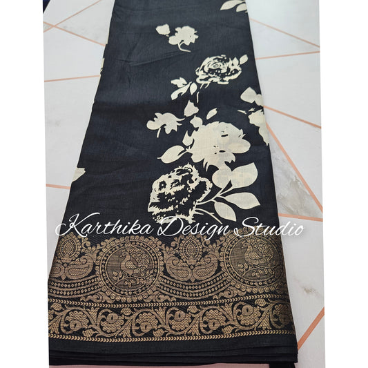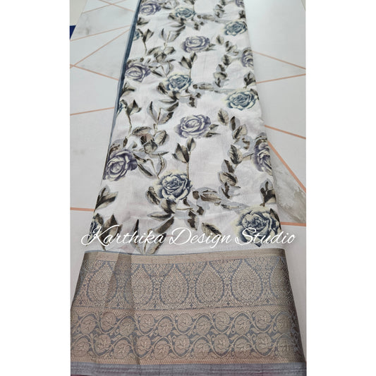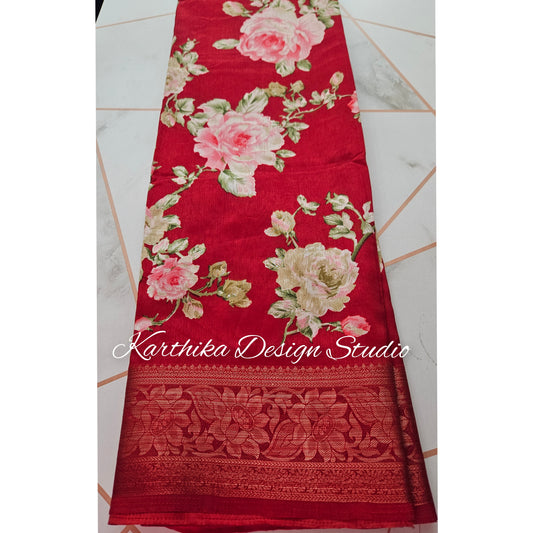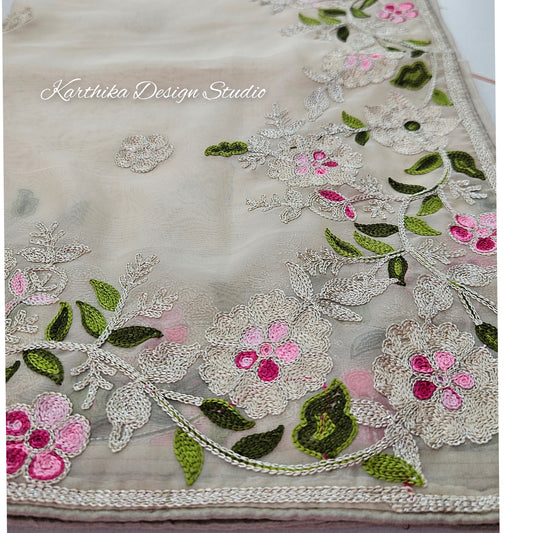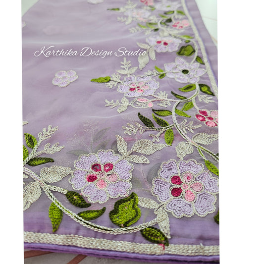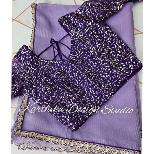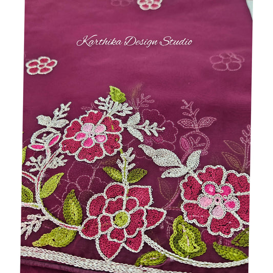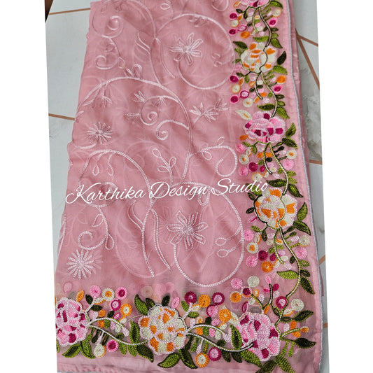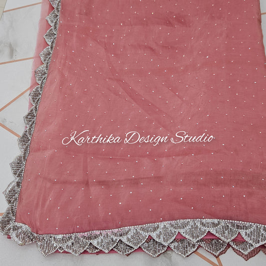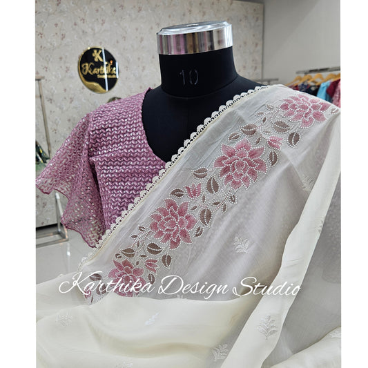 Onion pink Jimmy Choo saree with cutwork border and attached blouse piece