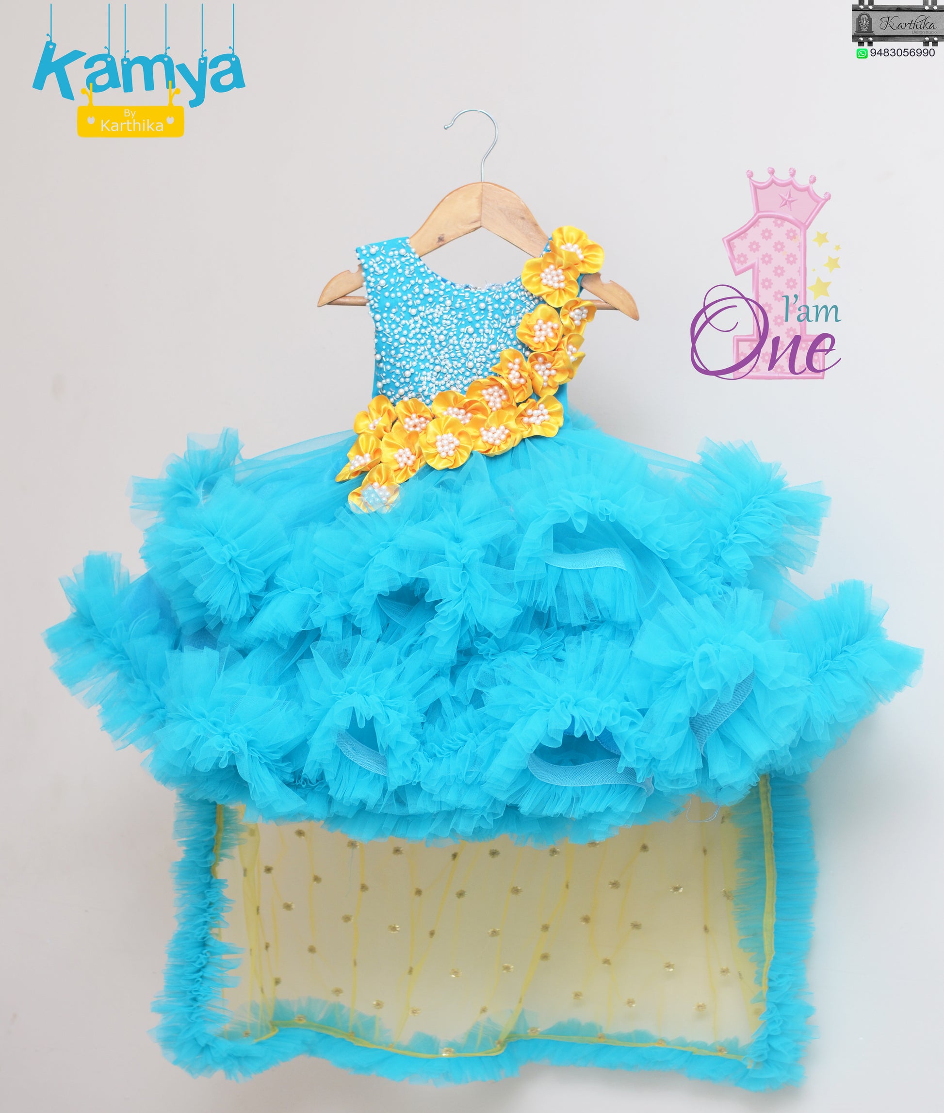 Blue embroidered net frock