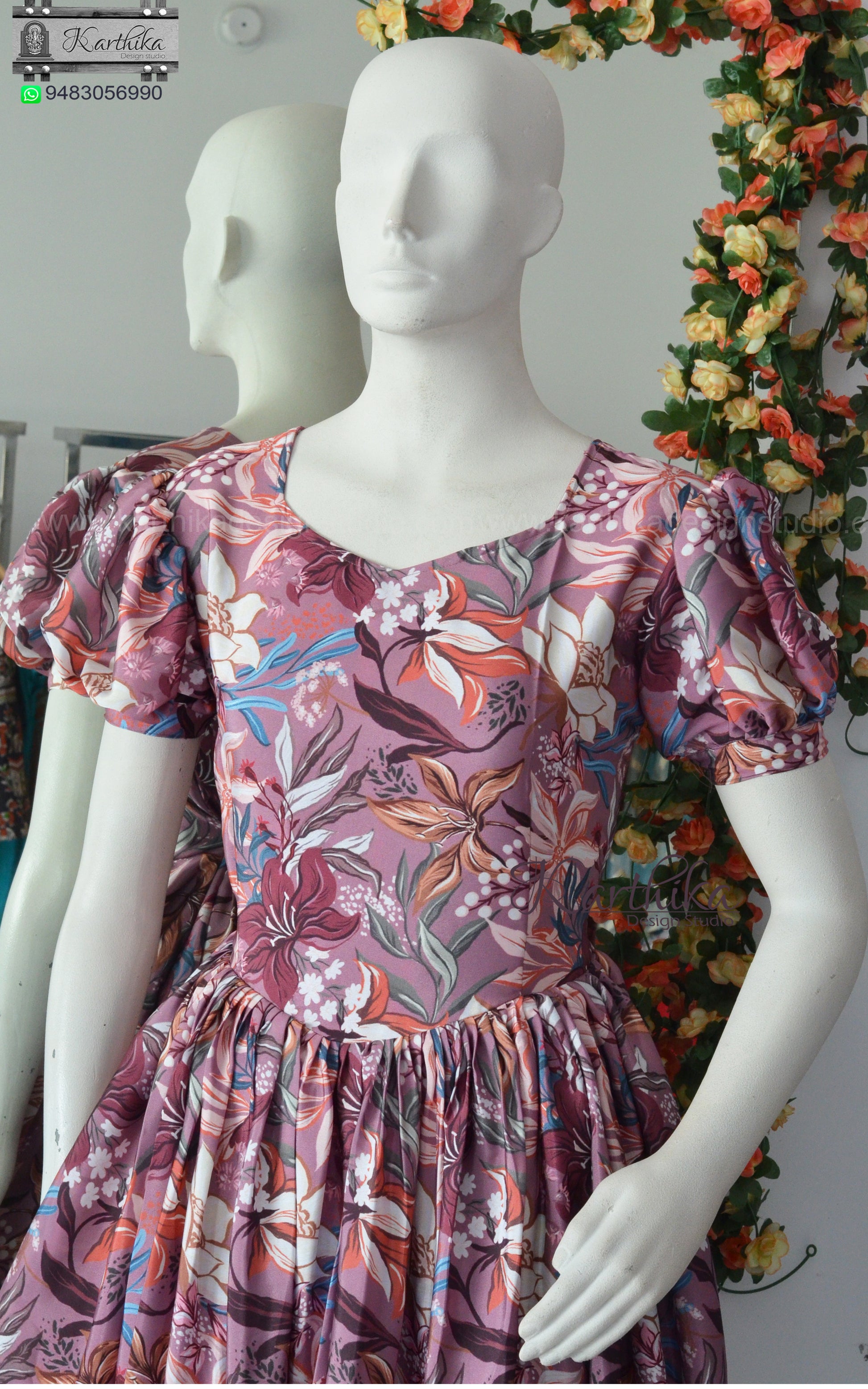 Floral satin frock ,below knee length