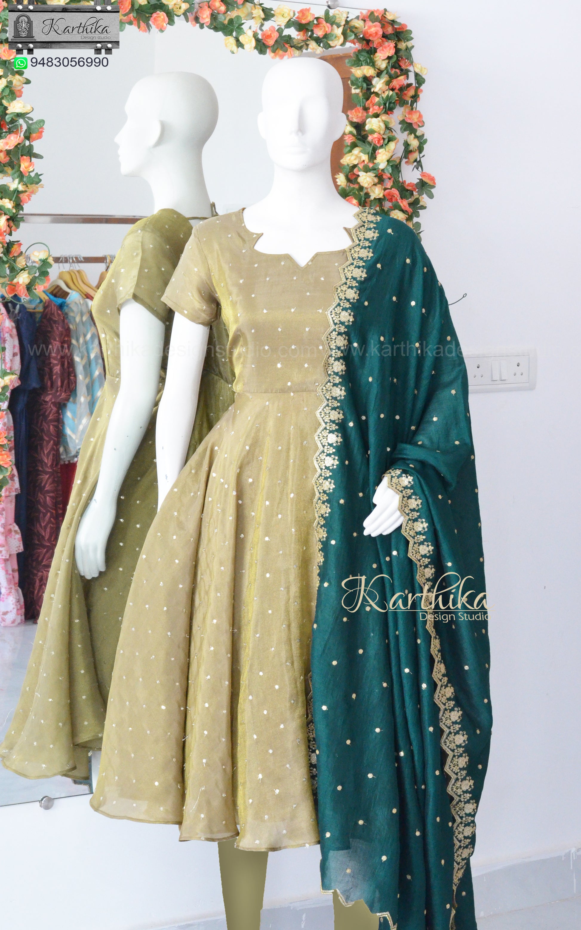 Includes chinnon dupatta and matching legging. Stitched with crepe linning.